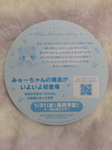 ミューちゃんのグッズは1月31から一部店舗を除いて発売らしいです!